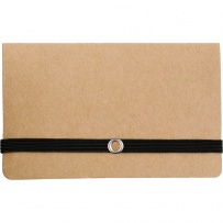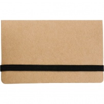Case with 150 sticky notes, inside pocket for business cards and elastic band for closing