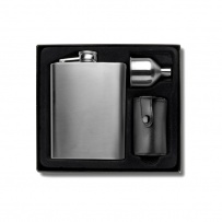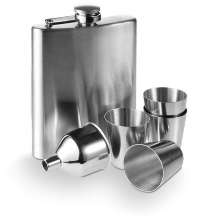 Drinking set, hip flask 220 ml, 4 cups 30 ml and funnel