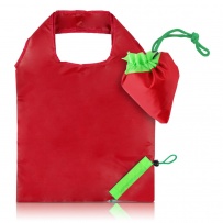 Foldable shopping bag with fruit-shaped pouch (05-strawberry, 06-pineapple, 07-orange, 10-apple, 13-grape, 62-kiwi, 99-tomato), product made from polyester 190T