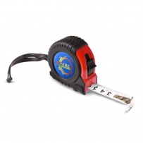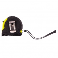 Measuring tape 3 m with carrying handle, clip for attaching to e.g. a belt, locking mechanism, rubber-coated body, product made of PP