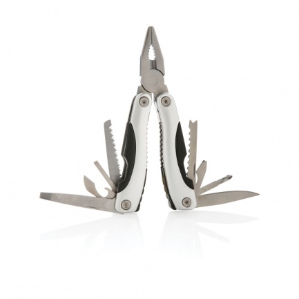 Aluminium multitool, handle with black details, 14 functions, packed in black 600D pouch.