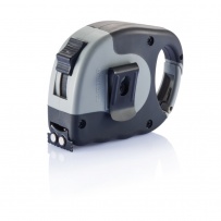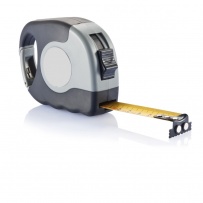 5M/19mm measuring tape, with carabiner, grey ABS case with black TPR grip, black belt clip, black self-lock button, black end hook with 2 strong magnets, yellow tape, matt silver PVC sticker. Registered design?