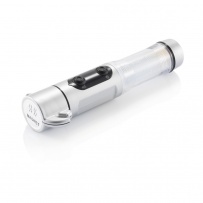 Latarka bezpieczeństwa, obudowa wykonana z ABS, 1 biała dioda LED oraz 9 czerwonych migających na boku, przecinak do pasów, młotek bezpieczeństwa, magnetyczna podstawka do przymocowania do karoserii samochodu, ślad węglowy produktu: 1,29 kg CO2