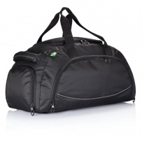 Torba sportowa, podróżna, wykonana z 600D ripstop, przednia kieszeń zamykana na zamek błyskawiczny z organizerem, kieszeń boczna, kieszeń na buty, pasek na ramię, uchwyty, 4 podpórki u podstawy, nie zawiera PVC, ślad węglowy produktu: 8,03 kg CO2