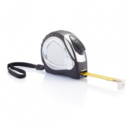 5m/19mm ABS chrome plated case with soft rubber grip and yellow matt tape. Including belt clip and wrist strap.