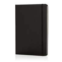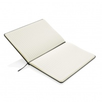 Notatnik A5 (72 kremowe kartki 70 g/m2 w linie), twarda okładka, tasiemka zakładkowa i elastyczna opaska do zamykania, ślad węglowy produktu: 0,54 kg CO2