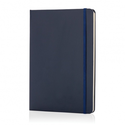 Ruled A5 hardcover standard notebook with elastic closure and bookmark ribbon. 144 pages of 70g/m2 inside. Cream coloured pages.