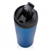 Fashionable stainless steel tumbler with geometric details. Inner body is made out of plastic. Handwash only. Content 300ml.