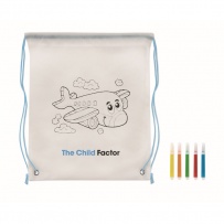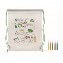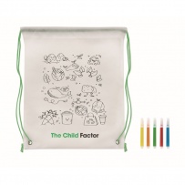Non woven drawstring bag with 5 markers and design to colour in. 80 gr/m2. Standard imprint.