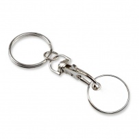 Keyring with carabiner clip for attaching, comes with a removable token for a shopping trolley in size ? 1, product made of metal