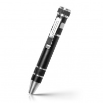 Schraubendreher in Kugelschreiberform mit 4 flachen und 4 Kreuzschlitzspitzen, hat einen Clip zum Aufstecken, Produkt aus Aluminium und Stahl