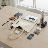 Torba na zakupy z długimi uchwytami B'RIGHT, wykonana z bawełny organicznej, zgodna z certyfikatem GOTS (Global Organic Textile Standard)
