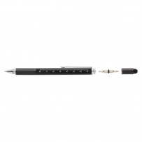 Multifunction pen with ruler (7cm) , spirit level, screw driver, stylus tip and ballpoint with blue writing ink (up to 400m) Made out of high quality brass material with aluminium clip.