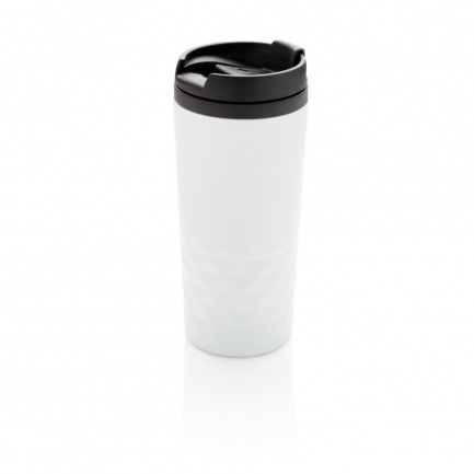 Fashionable stainless steel tumbler with geometric details. Inner body is made out of plastic. Handwash only. Content 300ml.