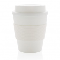 Stop single use! Bring your own cup and join the reuse revolution so you can contribute to a disposable free world. These lightweight and durable cups are perfectly suited to take your coffee on the go. These cups are reusable and made of 100% recyclable friendly PP material. The cups have a screw lid and a silicone sleeve. 100 degree Celsius food safe approved. Dishwasher and microwave safe. Content: 320 ml.