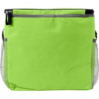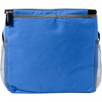 Rectangular cooler bag for 24 cans (0,33 l), zipped main compartment and front pocket, mesh pocket on both sides