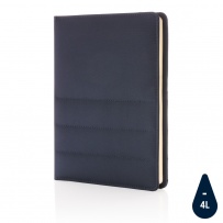 Teczka konferencyjna A5 z notatnikiem (64 kremowe kartki 80 g/m2 z papieru z recyklingu w linie), wewnątrz duża kieszeń, kieszeń na telefon, 2 miejsca na karty kredytowe i pętla na akcesoria do pisania, długopis w komplecie, tkanina zewnętrzna i wewnętrzna z poliestru AWARE? RPET, który został wykonany z butelek PET pochodzących z recyklingu z identyfikowalnym źródłem, produkt został wykonany z 7 butelek plastikowych poddanych recyklingowi, 2% zysku ze sprzedaży każdego produktu jest przekazywane do fundacji Water.org, nie zawiera PVC