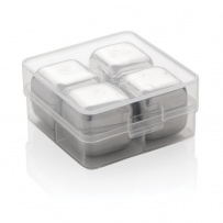 Zestaw chłodzących kostek do napojów 4 el., pozwalają na schłodzenie napoju bez jego rozcieńczania, wykonane ze stali nierdzewnej, kostki należy umieścić na 3 godziny w zamrażarce przed użyciem, w pudełku, ślad węglowy produktu: 1,57 kg CO2