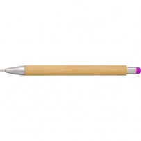 Stylo bille en bambou avec clip en métal, pointe et dessus en plastique