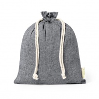 Eco-friendly bag in resistant recycled cotton material of 120g/m2. GRS (Global Recycled Standard) certification, guaranteing the recycled origin of the material used to manufacture the product. Cotton drawstring closure and stitched finish, including outside label with recycled cotton logo.