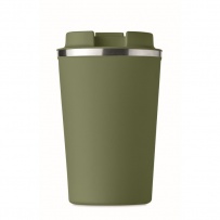 Double wall stainless steel tumbler with PP lid. Capacity: 350 ml. Leak free.