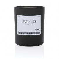Mała świeczka zapachowa w szklanym słoiku, zapach jaśminowy, ślad węglowy produktu: 0,52 kg CO2