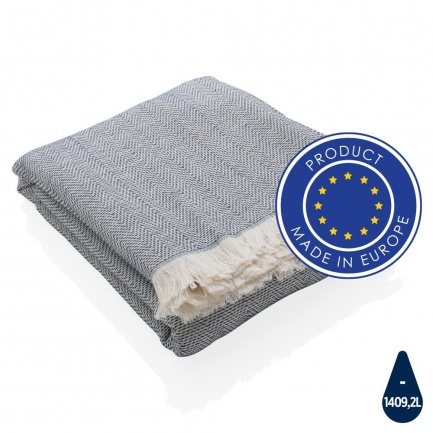 Our most luxurious and versatile towel. The perfect travel companion in any circumstance. It's made from 78% OEKO-TEX-certified cotton (produced without harmful substances or dyes) and 22% recycled cotton that's super soft and silky to the touch. With AWARE? tracer that validates the genuine use of recycled cotton. You can use it for almost anything, such as the beach, travelling, sauna, swimming pool, camping, sports, as a beach towel, bath towel, scarf, pareo, yoga towel, blanket, as a wrap for your child - you name it. Perfect for sofas and dressing beds, the Hisako throws are also wonderful for sunbathing on or using as a machine-washable picnic blanket. These four seasons hammam towels are quick-drying, mould resistant and incredibly easy to clean making them a brilliant choice for allergy sufferers, red wine lovers and beachgoers. Each towel saves 1409,2 litres of water. 2% of proceeds of each Impact product sold will be donated to Water.org. Machine washable. Made in Europe