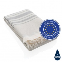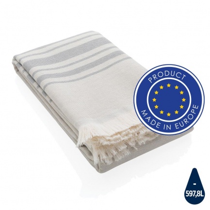 This lightweight, highly absorbent, sand-resistant, and quick dry towel is one of the best sustainable towels out there. Hammam towels are multifunctional: you can also use it as a picnic, baby blanket or as a yoga, beach, and gym towel. Even as a table cloth. Best of all, the thin material makes it ultra-portable and easy to toss in your beach bag, suitcase or over your shoulder. It's made from 88% OEKO-TEX-certified cotton (No harmful substances or dyes are used during the manufacturing process.) and 12% recycled cotton that's super soft and silky to the touch. With AWARE? tracer that validates the genuine use of recycled cotton. Each towel saves 597,8 litres of water. 2% of proceeds of each Impact product sold will be donated to Water.org. Made in Europe