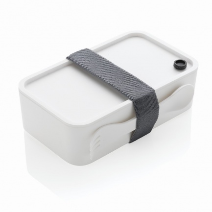 Pudełko śniadaniowe 1,2 L, lunchbox, wykonany w 93% z PP pochodzącego z recyklingu z certyfikatem GRS (Global Recycled Standard) który gwarantuje, że wykorzystane materiały pochodzą z recyklingu, w komplecie łyżkowidelec i elastyczny pasek, nie należy myć w zmywarce i używać w kuchence mikrofalowej