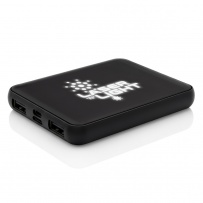 Power bank 5000 mAh wykonany z RPET, grawer ukazuje podświetlaną powierzchnię, 4 diody wskazujące poziom naładowania, 2 wyjścia USB (5V/2A), 2 wejścia (5V/2A): micro USB oraz USB-C, kabel micro USB w komplecie