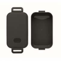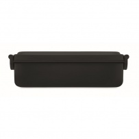 Lunch box z PP ze szczelną pokrywą, silikonowym zaworem i dwoma bocznymi klamrami. Pojemność: 800 ml.