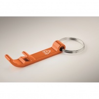 Porte-clés décapsuleur en aluminium recyclé, finition brillante.