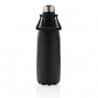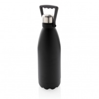Butelka termiczna 1500 ml z uchwytem, proszkowa powłoka, wykonana ze stali nierdzewnej pochodzącej z recyklingu, całkowita zawartość materiałów z recyklingu obliczona na podstawie wagi całkowitej przedmiotu: 88%, podwójne ścianki z próżnią pomiędzy, utrzymuje temperaturę napojów gorących do 20 godzin oraz zimnych do 15 godzin
