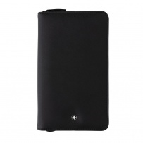 Portfel z ochroną RFID, etui na 4 karty kredytowe, miejsca na bilety, paszport, pieniądze, telefon komórkowy itp., uchwyt na długopis, wykonany z PU z recyklingu z certyfikatem RCS (Recycled Claim Standard) który gwarantuje, że wykorzystane materiały pochodzą z recyklingu, całkowita zawartość materiału z recyklingu obliczona w oparciu o wagę całkowitą przedmiotu: 36,24%, nie zawiera PVC, ślad węglowy produktu: 0,81 kg CO2