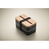 PP two-tier lunch box with removable divider and 3 cutlery utensils with attachable polyester band with bamboo lid. The lid has a phone stand functionality. Capacity: 400 ml (2x). Bamboo is a natural product, there may be slight variations in colour and size per item, which can affect the final decoration outcome.