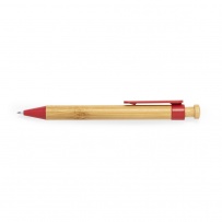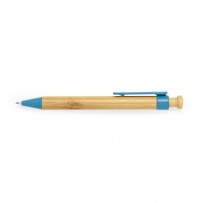 Ball pen with push mechanism made of bamboo and wheat straw. Bamboo barrel, with matching accessories in wheat straw. Original XL size clip, available in a wide range of colours. Jumbo cartridge and blue ink.Materials such as bamboo promote the use of natural raw materials, thus reducing pollutant emissions. It comes from a highly resistant and versatile plant, with rapid growth and regeneration, making it an excellent alternative to the use of traditional wood.