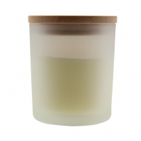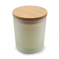 Świeczka zapachowa w szklanym słoiczku (02-wanilia, 05-cynamon, 03-olejek sandałowy, 06-jaśmin) z bambusowym wieczkiem, zawiera głównie wosk roślinny (wosk carbauba), czas palenia około 20h