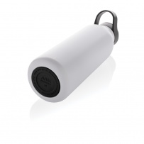 Butelka termiczna 500 ml, wykonana ze stali nierdzewnej pochodzącej z recyklingu, całkowita zawartość materiałów z recyklingu obliczona na podstawie wagi całkowitej przedmiotu: 96%, podwójne ścianki z próżnią pomiędzy, utrzymuje temperaturę napojów zimnych do 20 godzin, pasuje do większości uchwytów samochodowych, pudełko można wykorzystać jako stojak na telefon lub doniczkę, w pudełku z papieru kraftowego