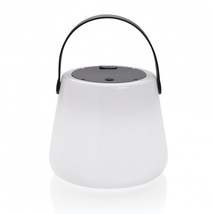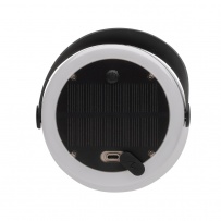 Lampka LED, lampka solarna wykonana z ABS z recyklingu, całkowita zawartość materiałów z recyklingu obliczona na podstawie wagi całkowitej przedmiotu: 71%, wbudowana bateria o pojemności 1200 mAh, do 20 godzin pracy na jednym naładowaniu, wodoodporna IPX4 (całkowita ochrona przed spryskiwaniem i zachlapaniem wodą z różnych kierunków z natężeniem do 10 litrów na minutę), kabel w komplecie, wejście USB typu C, ślad węglowy produktu: 2,45 kg CO2