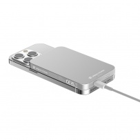 Power bank 5000 mAh, magnetyczna ładowarka bezprzewodowa 15W, szybkie ładowanie przewodowe 20W, wykonany z aluminium i ABS z recyklingu z certyfikatem RCS, wyjście USB typu C, ślad węglowy produktu: 2,63 kg CO2