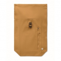 Rolltop-Rucksack mit Klettverschluss aus 390 g/m2 (recycelte Baumwolle 80% und recycelter Polyester 20%). Fronttasche mit Reißverschluss.
