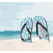 Sublimation beach slippers with PVC straps. Sole made of rubber with polyester top cloth.Fits 38-41. Item can only be ordered printed.