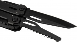 Schwarzwolf multitool contains 11 kinds of tools - a knife, a beer opener, a can opener, pliers, splitters, a saw, a screwdriver, a Phillips screwdriver, a file, a stripping tool. The tool set has a carabiner and is packed in a neoprene case and is packed in a Schwarzwolf box.