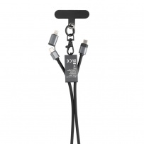 Kabel do ładowania i synchronizacji danych, 2 w 1, smycz na telefon, wykonany z RPET oraz aluminium z recyklingu z certyfikatem RCS, moc całkowita do 60W, wejście USB-C, podwójna końcówka: kompatybilna z urządzeniami iOS i USB-C, całkowita zawartość materiałów z recyklingu obliczona na podstawie wagi całkowitej przedmiotu: 61%