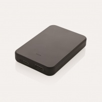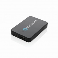 5.000 mAh pocket size powerbank with USB C input/output port and additional USB A port. The case is made from RCS certified recycled ABS plastic. RCS (Recycled Claim Standard) is a standard to verify the recycled content of a product throughout the whole supply chain. Total recycled content: 25 % based on total item weight. When fully charged the powerbank provides you with enough energy to re-charge your mobile phone up to two times. The powerbank contains a long lasting grade A 5.000 mAh lithium polymer battery. The power indicators will indicate the remaining energy level so you always know when to re-charge. Type-C Input 5V/2.4A; USB A: output 5V/2.4A, Type C output:5V/2A Item and accessories PVC free. Including RCS certified recycled TPE charging cable. Packed in FSC? mix packaging.