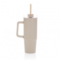 Kubek podróżny 900 ml, ergonomiczny uchwyt, obrotowe wieczko trzema pozycjami (dziubek do picia, otwór na słomkę, zamknięte), wykonany z materiałów z recyklingu, całkowita zawartość materiałów obliczona na podstawie wagi całkowitej przedmiotu: 80%, wyłącznie mycie ręczne, w pudełku z papieru kraftowego