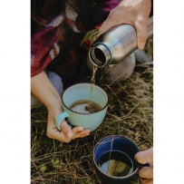 Butelka termiczna 500 ml z uchwytem, wykonana ze stali nierdzewnej, podwójne ścianki z próżnią pomiędzy, utrzymuje temperaturę napojów ciepłych do 12 godzin i zimnych do 24 godzin, wyłącznie mycie ręczne