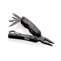 Pocket size multi tool made with strong 420 stainless steel. With multiple functions that include: Long Nose Pliers, Standard pliers, Wire cutters, knife, bottle opener, flat screwdriver, Philips screwdriver, file, file cleaner and karabiner hook. Packed in FSC? mix packaging