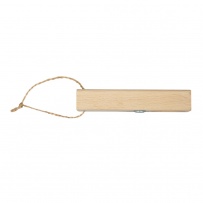 Otwieracz do butelek ze sznurkiem do łatwego zawieszania, produkt wykonany z drewna i metalu. Wyprodukowany w Europie.