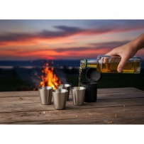 Zestaw 4 metalowych kieliszków 30 ml, zamykane na zamek etui wykonane ze skóry PU